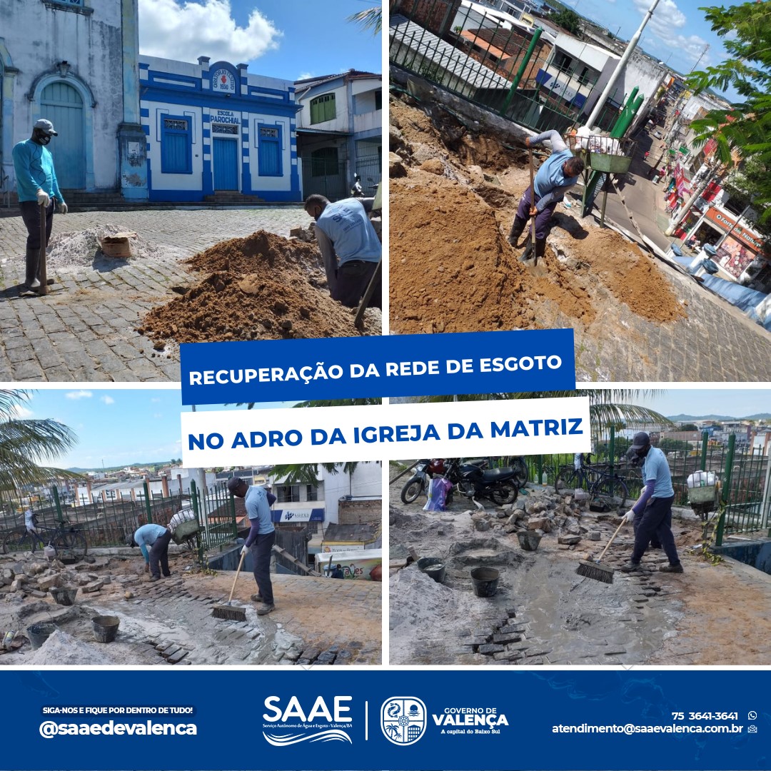 VALENÇA: É o SAAE na recuperação da rede de esgoto e recomposição de pavimentação no Adro da Igreja da Matriz.